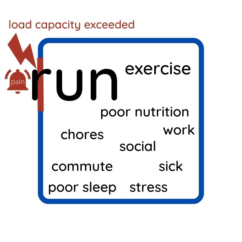If you look at the box analogy again, other stressors can make your baseline load higher than usual. So if you increase your running as well, you reach your limits quicker than usual.